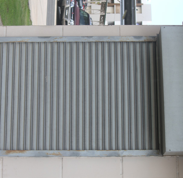 - System similar to metal roll shutters, except they are opened and closed on the sides of the opening.