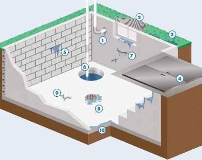 Leaks at potable water, A/C and sewage lines can expose structural elements to humidity and deterioration. Go to St. 16 for more info on checking for leaks.