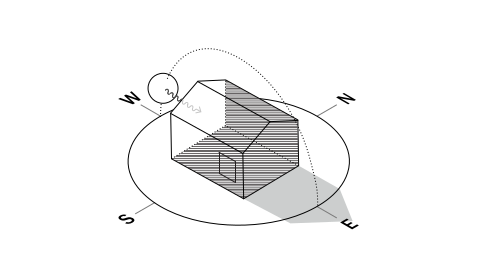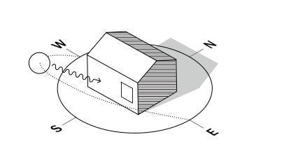 - The critical facades for sunlight are the ones located to the east, west and south. Orient a building in a way that the longer side faces north/ south, and the narrower side faces east/west.