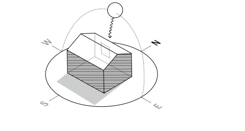 EAST Minimize the quantity and size of openings in this façade. Since it is exposed to direct sunlight in the morning, it will increase heat gain. |