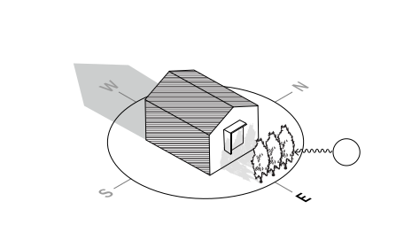 SOUTH Plant tall bushes on the South side to reduce day-long direct sunlight. |