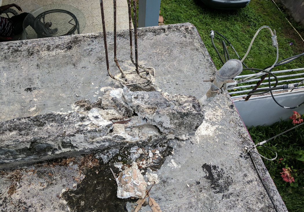 - Improper concrete mixture, inadequate and/or exposed rebar in concrete foundations. (Inadequate design of concrete foundations can lead to cracking and fragments dangerously breaking off during a storm or seismic event).