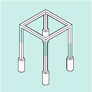 Columns, also called piers, are made of reinforced concrete and rest on footings.