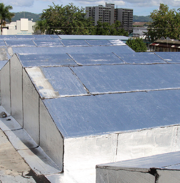 - Have drainage to prevent rainwater ponding, particularly in low-sloped roofs.