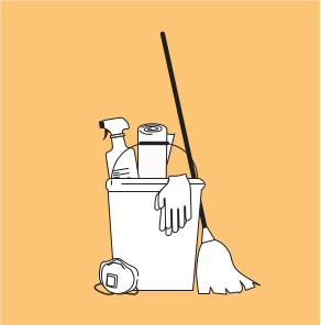 Supplies that will help you clean up after the event: large strong garbage bags; eco friendly cleaning agents; mops, buckets, rubber gloves; safety goggles; N-95 respirators for the household.