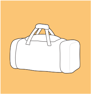 Your bag should be durable and easy to carry, like a backpack or suitcase on wheels. Keep it where you can grab it quickly.