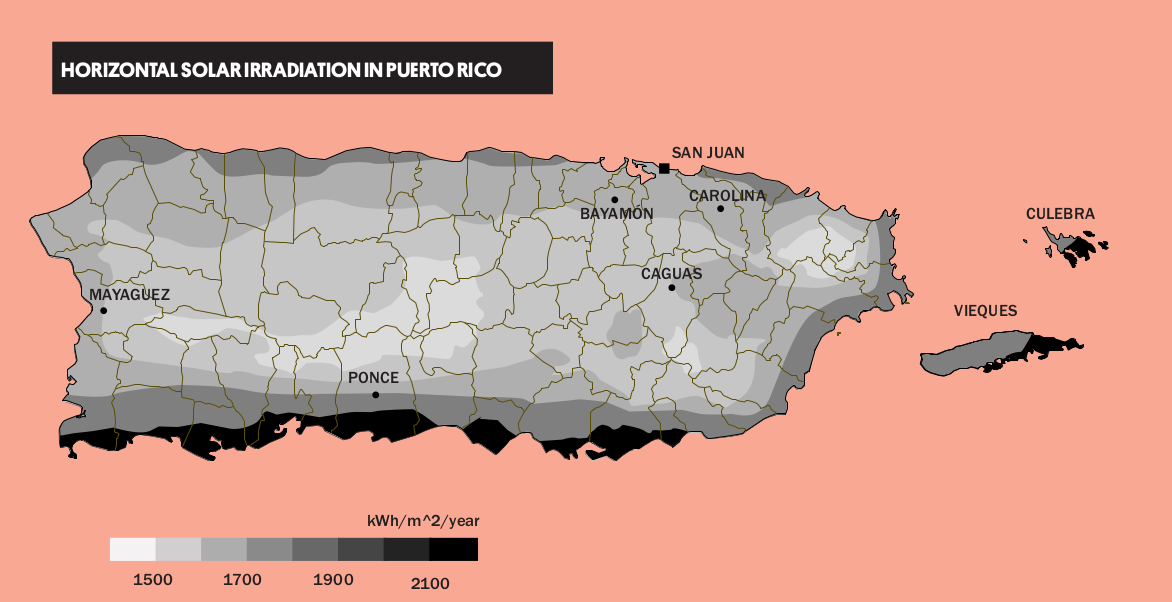 The majority of electrical power in Puerto Rico is produced, transmitted, distributed, and sold by a single source: the Puerto Rico Electric Power Authority (PREPA)/Autoridad de Energía Eléctrica Puerto Rico (AEEPR, by its Spanish acronym). When PREPA’s power plants (largely fueled by natural gas and imported oil) and power lines were completely disabled by Hurricane Maria, millions of people suddenly went without the conveniences of modern life (electricity, refrigeration, and Internet service). Water distribution became impossible when pumps lost power. The situation became life-threatening for people whose medical care depended on electrical devices. Seniors and others who needed air-conditioned spaces suffered from heat-related illnesses. Best estimates indicate that the death toll in Puerto Rico grew by a factor of approximately 1700% in the three months following Maria’s landfall, partly because of the lack of electricity, potable water, and limited access to medical facilities and healthcare.