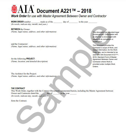 Example of a template contract that can be used between a homeowner and contractor. This template agreement is provided for free and can be downloaded from the AIA webpage.