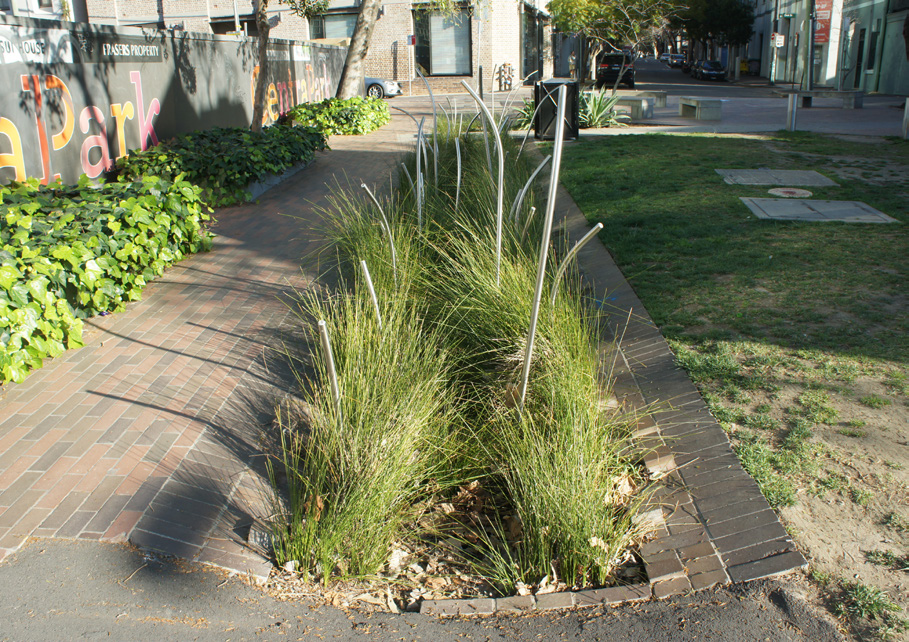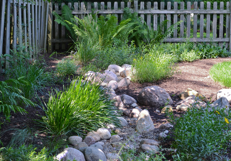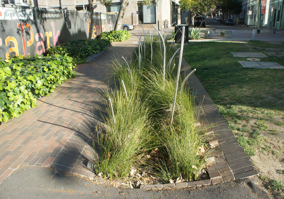 Bioswales/Rain Gardens receive water and filter it through different substrate layers and vegetation and help to absorb rainwater. They can be engineered to manage a specific amount of rainfall.