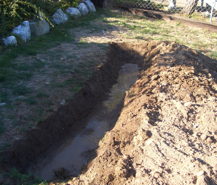 - Dig the channel with sloped slides and a small slope in the direction of water runoff.