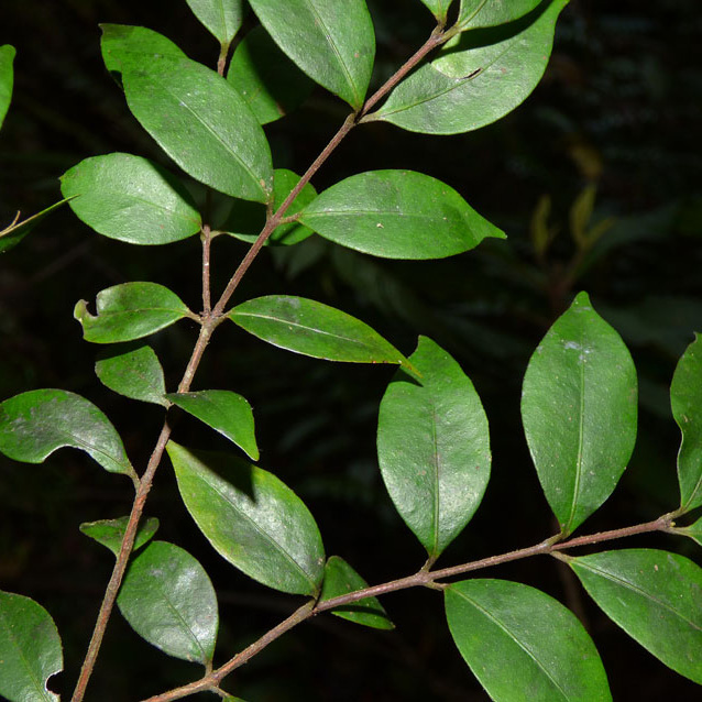 Small to medium tree with green leaves of 1 - 2 cm and small white flowers. Gives small fruit that is red or black when ripe.