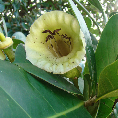 Medium tree that grows on the coasts. The tree has big rounded leaves and produces edible fruits.