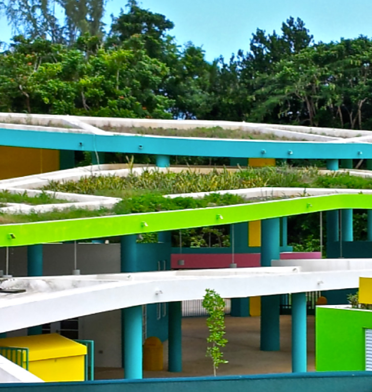 Roofs that are partially or completely covered with vegetation and a growing medium mitigate excessive heat gain and manage stormwater.