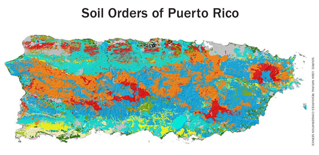 The soils in Puerto Rico are variable and are classified as different types or diverse series depending on their localization within Puerto Rico. The soils that have similar characteristics conform a series. The most prominent series were classified in 11 groups. The two principal groups are in the mountainous and humid regions and the coastal valleys. The set of these series is known as the association, named after the areas in which they were identified. In the mountainous humid area, the associations include Tanamá-San Sebastián, Humatas-Los Guineos-Alonso, and Pellejas-Lirio-Ingenio; these are clay-like and loamy.